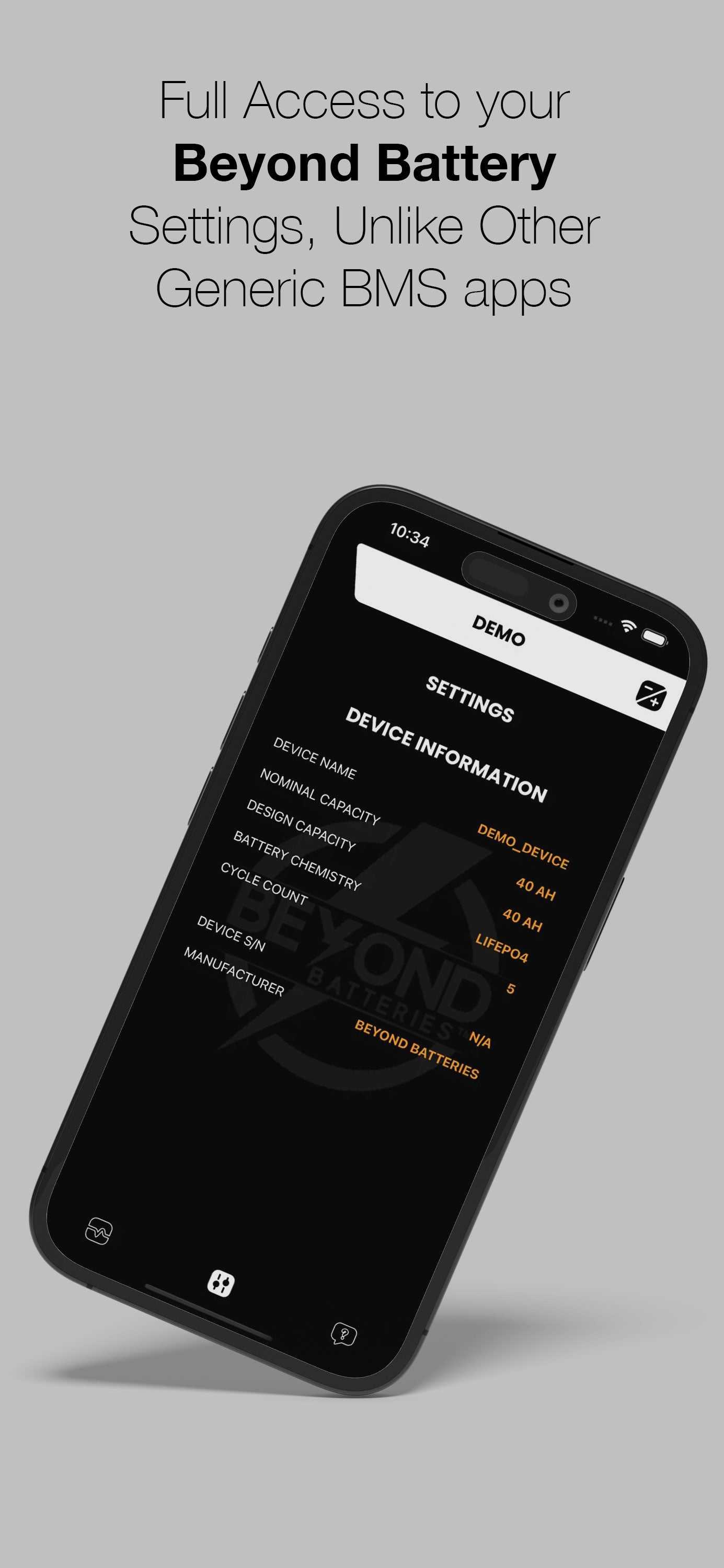 Unlike other BMS Apps, we give you full access to all of your Beyond Battery settings