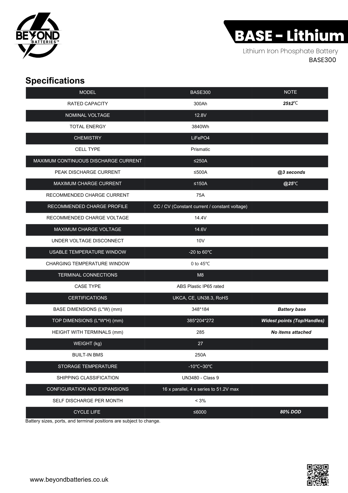 Size & Weight - At just 27kg, BASE300 delivers 4X the power, 1/3 the weight, and 3X the lifespan of similar-sized AGM batteries.