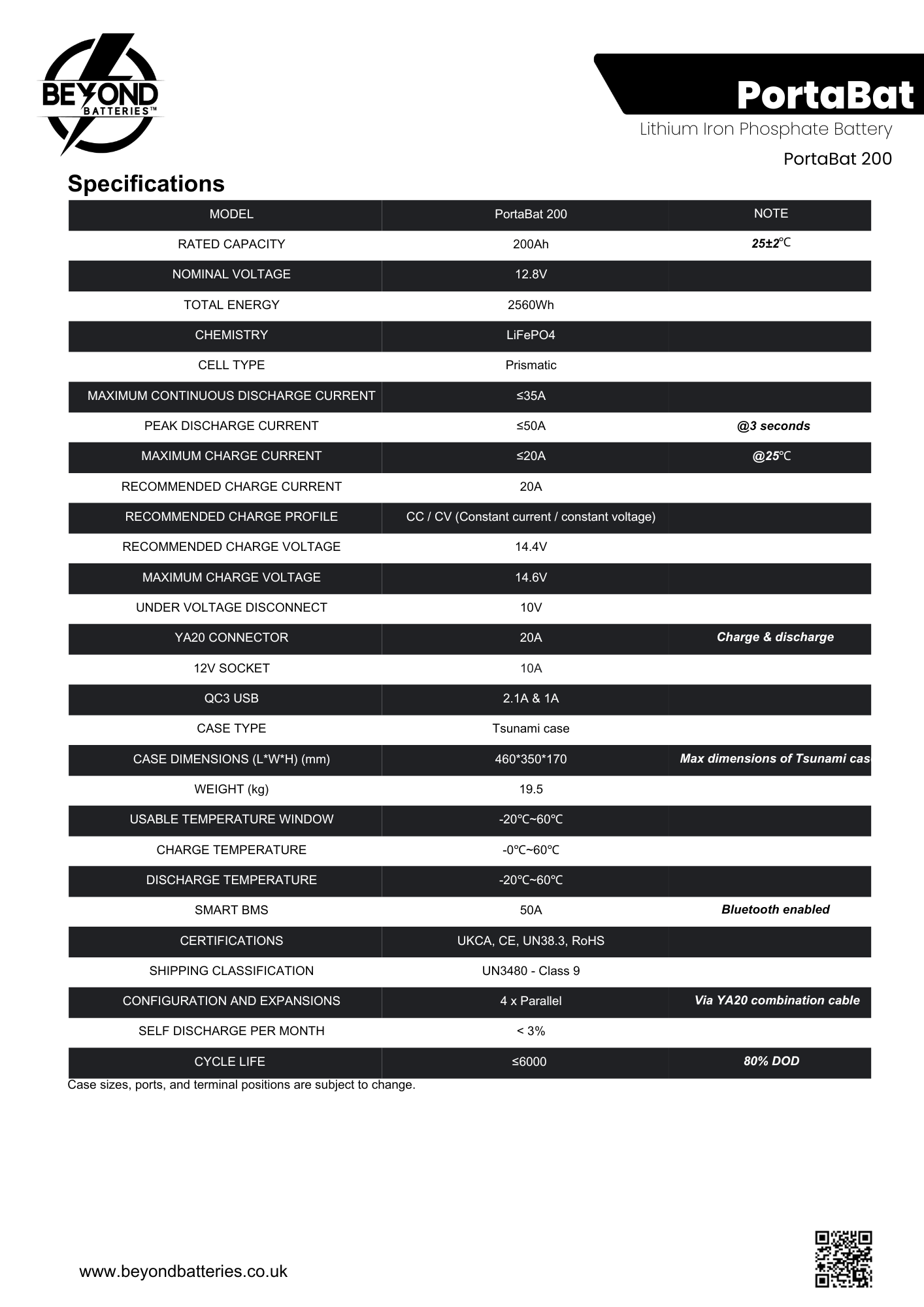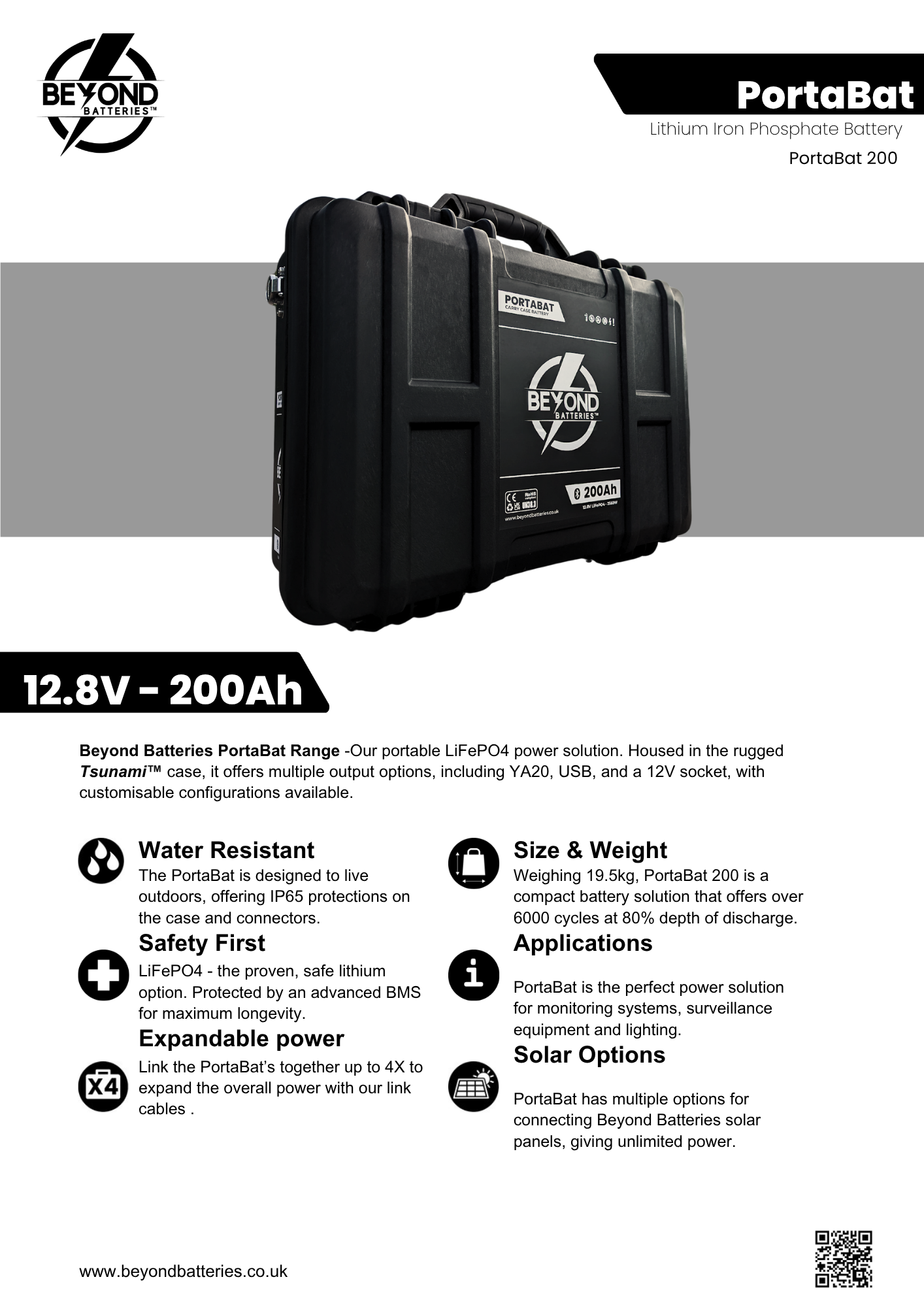 Outperforming ALL rivals, the Beyond Batteries 12V portable power unit offers 200Ah (2560wh) of reliable energy. The PortaBat features:
