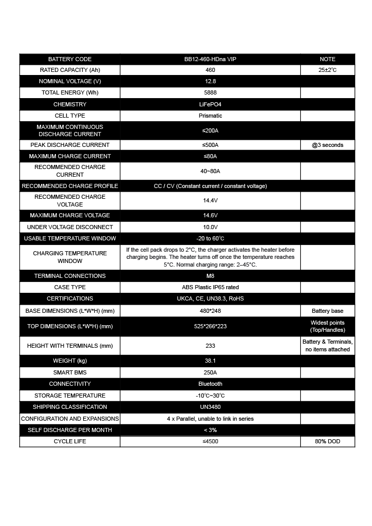 460Ah 12.8V Lithium Iron Phosphate LiFePO4 with Bluetooth and Heating - A cost-effective, reliable power solution for high-use applications, where compromise is not an option. Built for durability and performance on a budget, our lithium ensures uninterrupted power, keeping essential equipment running when it matters most.