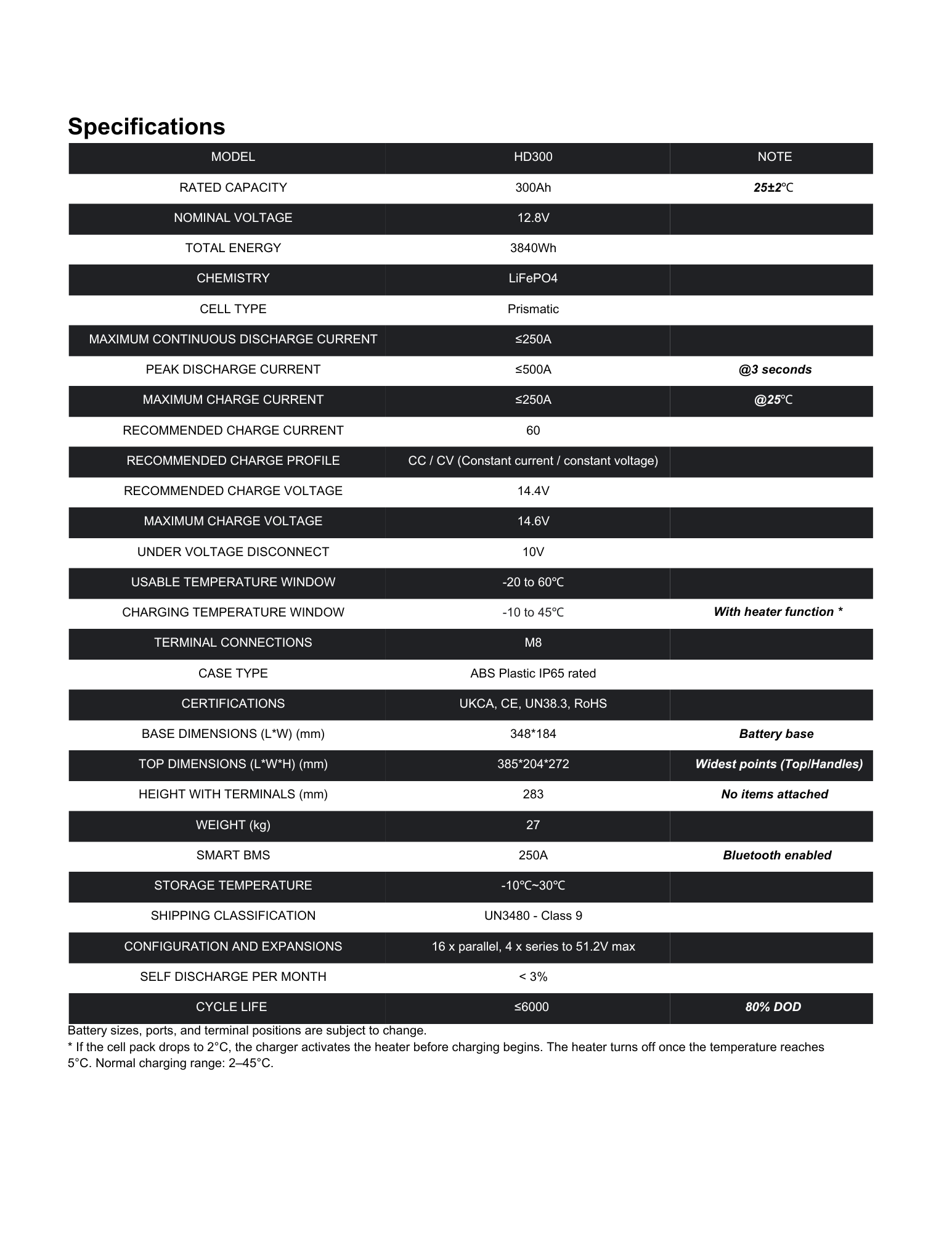Heater Function - The HD range is equipped with heating to enable charging in temperatures down to -10°C.