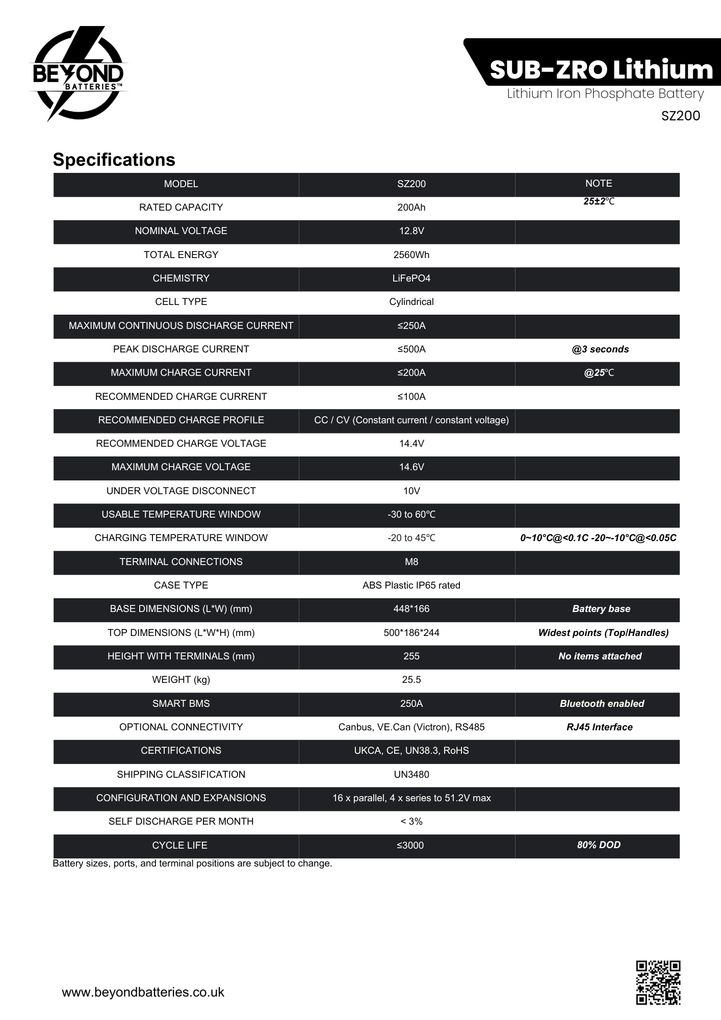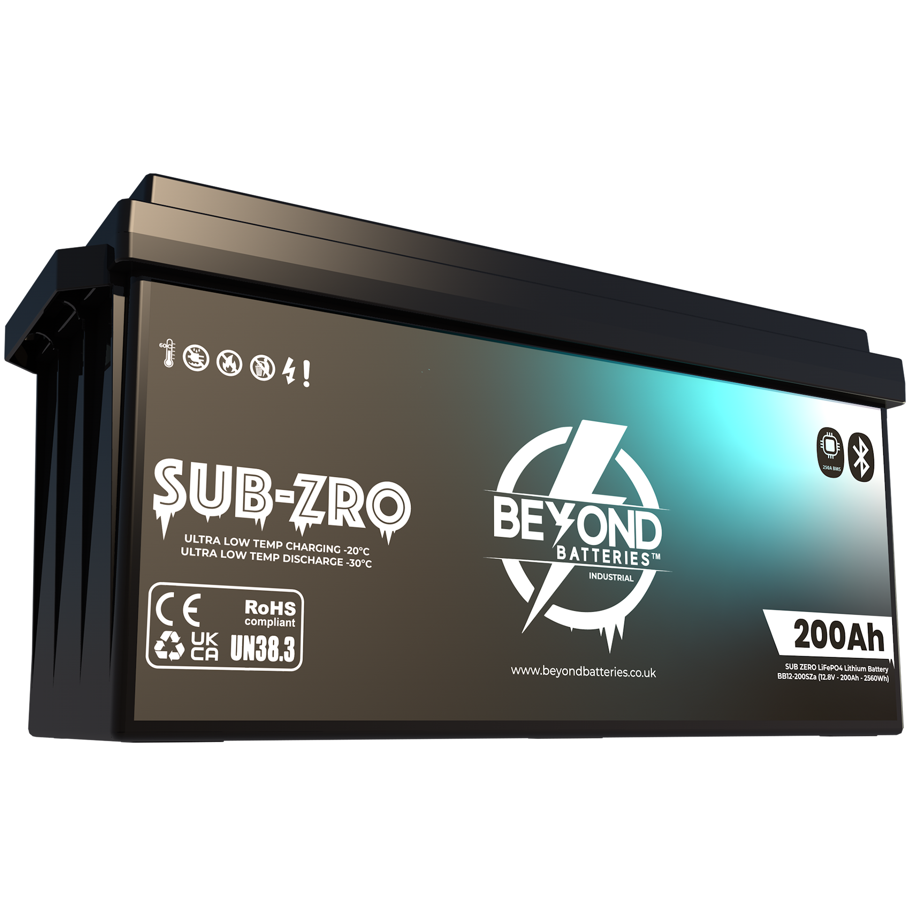 SZ200 - Uses specialised electrolyte formulas to enable ion movement in extreme cold, preventing lithium plating found in standard LiFePO4 cells. Paired with a smart BMS these batteries ensure safe, reliable operation in harsh conditions.