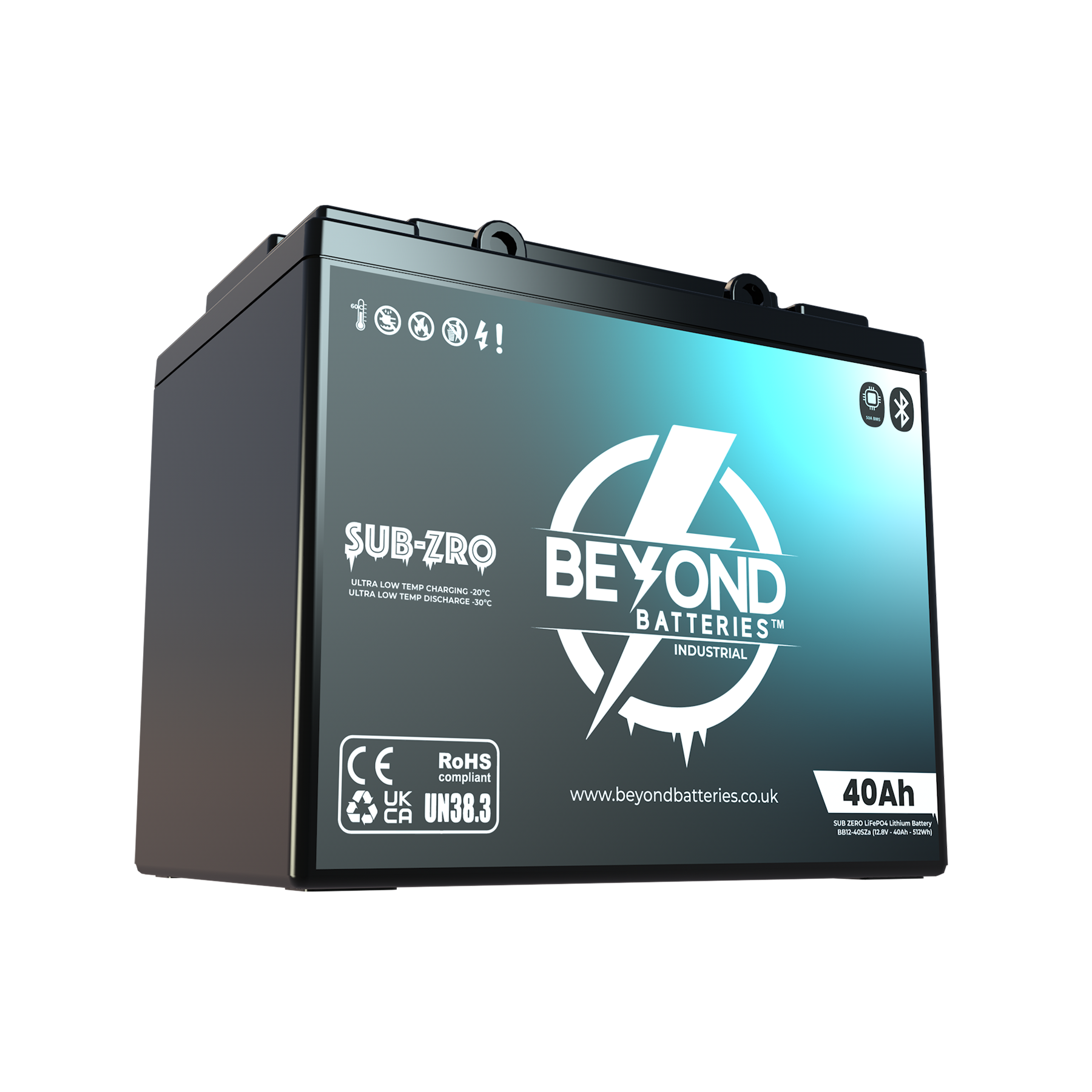 SZ40 - Uses specialised electrolyte formulas to enable ion movement in extreme cold, preventing lithium plating found in standard LiFePO4 cells. Paired with a smart BMS these batteries ensure safe, reliable operation in harsh conditions.
